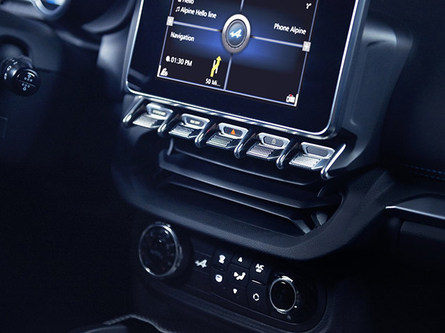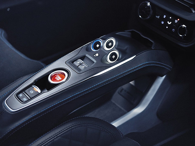 看到如此惊艳的外观,相信内饰也能带来不少的惊喜。Alpine A110的内饰与外观一样,都极具运动风格。三辐式多功能方向盘,中间配有与车身颜色相同的蓝色标识,再加上那尺寸夸张的换挡拨片以及方向盘上大大的红色SPORT按键,是不是看到都有点想冲上去大脚油门去极速奔驰呢。新车采用了大量的碳纤维饰板,中控区域搭载了液晶触摸显示屏,配有飞行器式物理按键,按钮式的换挡机构、桶形赛车座椅以及其座椅上的标识也都充分营造出浓厚的运动氛围。并且Alpine A110还提供Normal、Sport、Track三种驾驶模式,根据不同的选择会分别调整引擎与变速箱的反应、转向灵敏度、ESC车身稳定系统的介入程度等,甚至连排气声浪也都有所不同,是不是相当富有驾驭乐趣呢!这一点估计它可以力压群雄了。