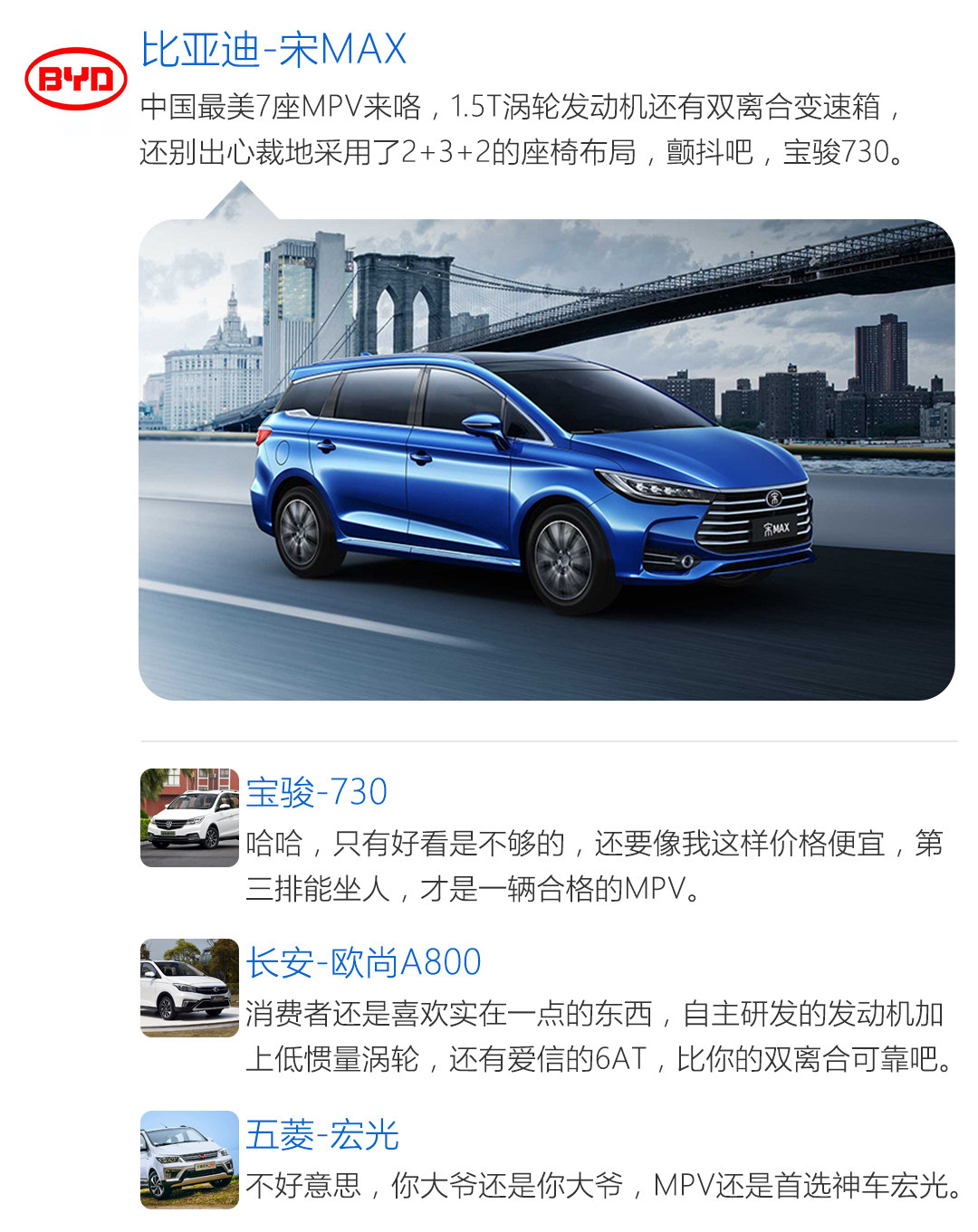 教授辣评:外观设计可以说是宋MAX的致胜法宝了,但打着“大空间”旗号的它,却采用了2+3+2布局的座椅,这就放弃了很多7座MPV原有的便利性。虽然用户基数没有730它们大、虽然动力系统的调教依然有待完善。但教授其实挺看好宋MAX的,因为它的外观可以说是真真正正的摆脱了面包车的影子。