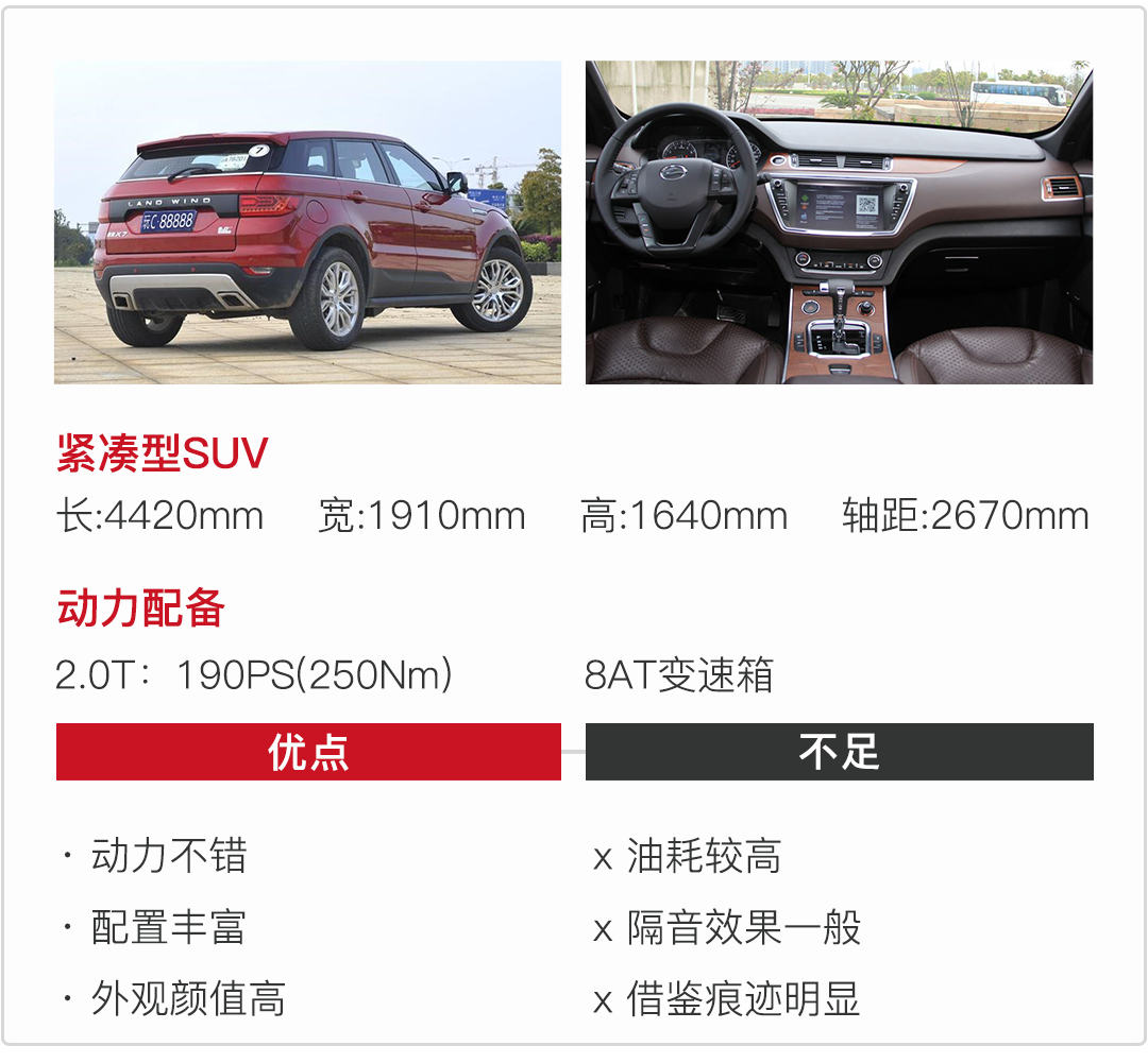 相信大家对这款陆风X7并不陌生,对!外观很“成功”地借鉴了路虎极光,相似度极高,满足了不少人爱装X的心理。不过内饰设计倒是有着较高的原创度,配置也相当丰富。搭载来自三菱的2.0T发动机,动力表现还算可以,不过油耗确实是硬伤。
