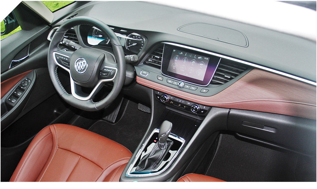 看完让人印象深刻的外观,接下来还是得多关注内饰,毕竟这是跟驾驶员乘客最常接触到的地方。从布局来看,别克环抱式座舱已经很熟悉了,只不过配色上显得很特别,实拍车型为时尚棕,还有雅士米以及冷峻黑可选。