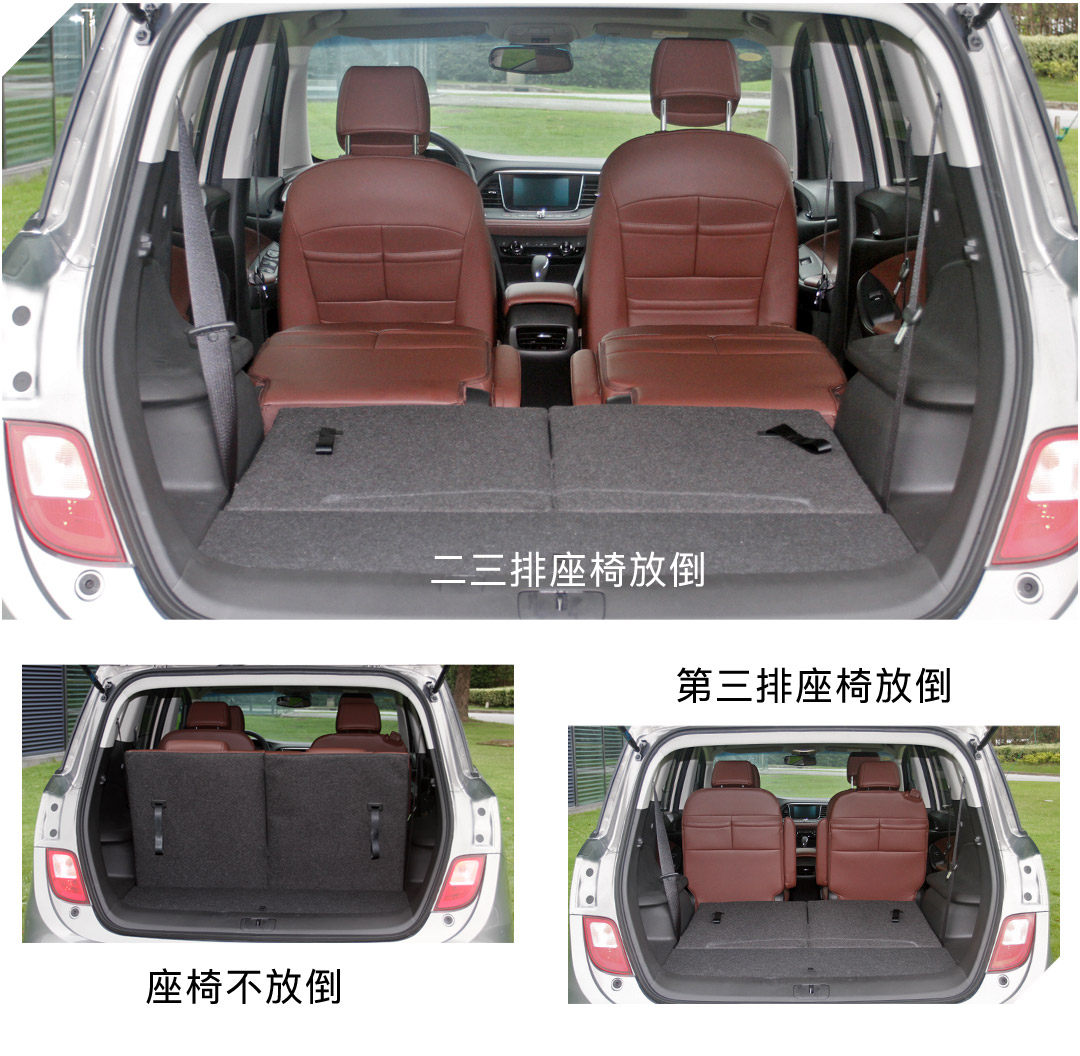 后备箱也是一个重点,只是三排座椅全使用的情况下,别克GL6依然跳脱不出MPV的问题--后备箱剩余空间较小,只能放几个背包应急之用。但当你放倒第二三排座椅时,纵深可达到1887mm,再加上1164mm的横向宽度,容量可扩充到1521L,装载能力大大提升。