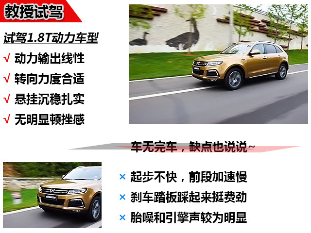 起步时,教授觉得还挺慢,稍微踩点油门来提升一下,会发现前段的踩踏好像用处不大,但当发动机转速超过2000转的时候,涡轮的介入使得较足的动力开始线性输出。此时轻松开上60时速,往下加速会发现动力输出确实比较线性,油门反应也很积极。而且采用的是双离合变速箱,实际驾驶起来教授也确实没感受到明显的顿挫感,觉得很舒服。保持60时速过一些减速带时,得益于前后独立式悬挂,颠簸感并不明显。教授还特意快速走了些坡路,实际感受起来坐在车厢里的我并不会觉得很不适,还是能保持舒适的坐姿。跟厂商人员沟通,原来这悬挂还是由英国莲花进行了专业的调校,这点必须好评!转弯的时候,车子也能保持良好的姿态,车上人员也不会觉得摇晃。