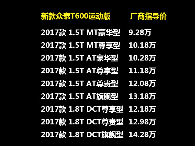 价格方面,新款众泰T600运动版也在今日上市,售价区间为9.28-14.28万元,相比现款确实便宜了一些。