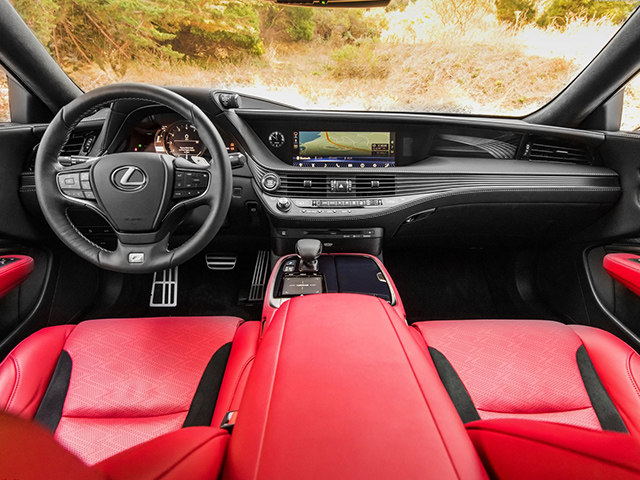 作为运动版本的F SPORT内饰整体设计与普通版一致,只是内饰颜色换成了更为运动的大红色配色,换装了包裹性更好的前排座椅,并换装了全新运动型方向盘。顶棚也升级为麂皮面料,踏板采用了铝合金踏板。