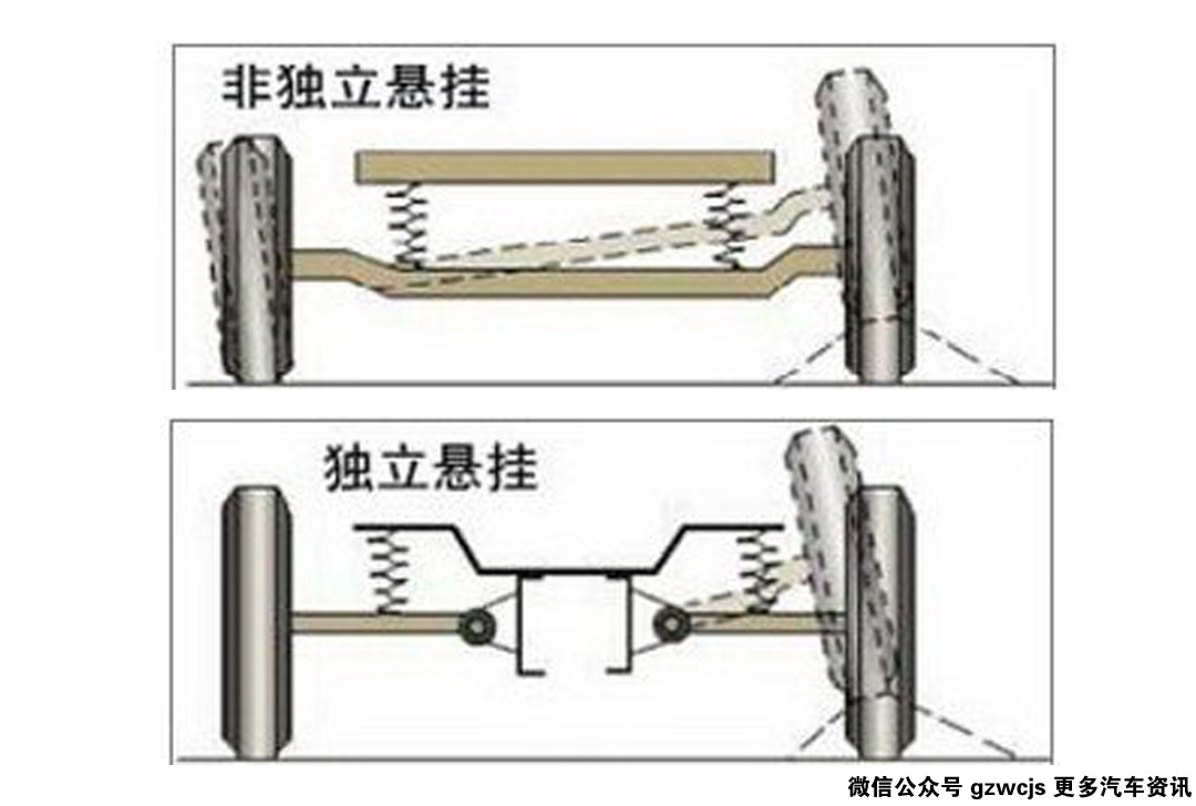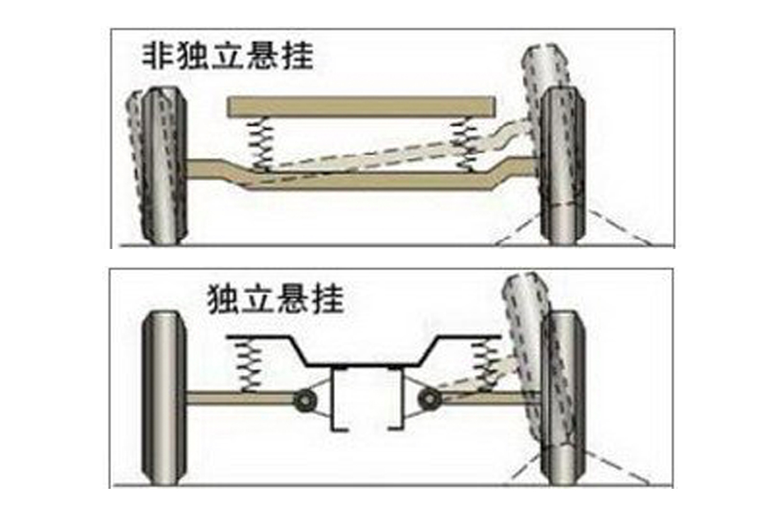 从结构图就可以看出,其实非独立悬挂和独立悬挂之间的差别不难理解,非独立悬挂的车子,两个后轮之间是通过扭力梁或者拖曳臂这些刚性部件连接在一起,任何一个车轮遇到颠簸,都会对整个底盘的姿态造成影响。相对来说,独立悬架由于车轮与底盘之间并非硬链接,所以一侧车轮的跳动并不会影响到另一侧的车轮。所以在不平坦的路面行驶时,独立悬架的结构更有利于提升汽车的滤震能力。