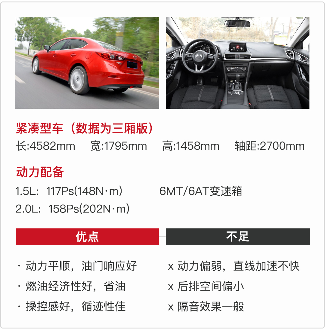 教授辣评:轮速度,昂克赛拉并不算快,直线加速的话,思域、高尔夫(1.4T高功率)都能秒杀小昂,所以TA的运动主要体现在操控,积极动力响应,及时快速的换挡,丝毫没有拖泥带水,底盘应更是有一种紧贴地面的感觉,特别是在山路的时候,会感觉到小昂在挑衅你去开出TA的极限,这就是人车沟通。当然,马自达把所有的成本都放在了驾驶体验上,以至于小昂的后排空间、隔音表现都不如人意,后排要坐丈母娘的话请谨慎考虑。