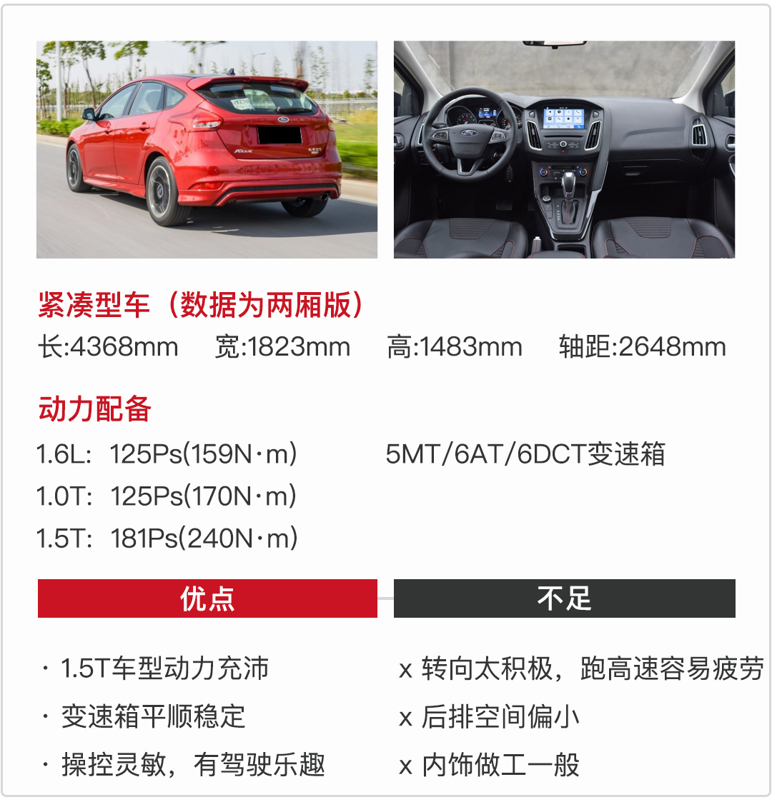 教授辣评:说到底盘,同级别里面就不得不说福克斯,转向犀利,底盘滤震好同时有能给人充足的信心。但在动力系统方面,采用了涡轮发动机配6AT的福克斯,似乎比以前自吸年代或者双离合年代的福克斯在动力输出上少了一点连贯性和那种直接的感觉。以至于原本有实力走运动路线的福克斯,偏偏在买菜车的路上越走越远,对于玩车的人来说是略失望的,但人各有志,起码目前来说福克斯是一辆称职的家用车。