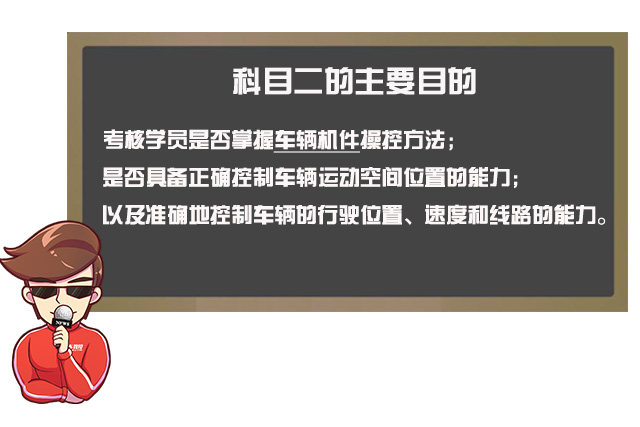 首先要说说这科目二考试的目的,科目二考试主要是考核考生是否有能力操控汽车、正确使用车辆、操控车辆运动空间位置的能力,简单点说,就是让驾驶员随心所欲地操控汽车前后左右运动。