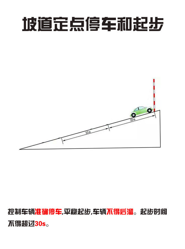 坡道定点停车和起步的难点在于对车辆刹车和离合的控制,对停车时机的掌握等。当然为了应对这种情况,驾校的各种野路子很多,如停车后保持车辆处于1挡的位置,拉起手刹之后,同时踩离合和油门,之后慢慢松开离合,车辆就向前弹射了,具体方法不在论述,看各地教练的教学方式了。