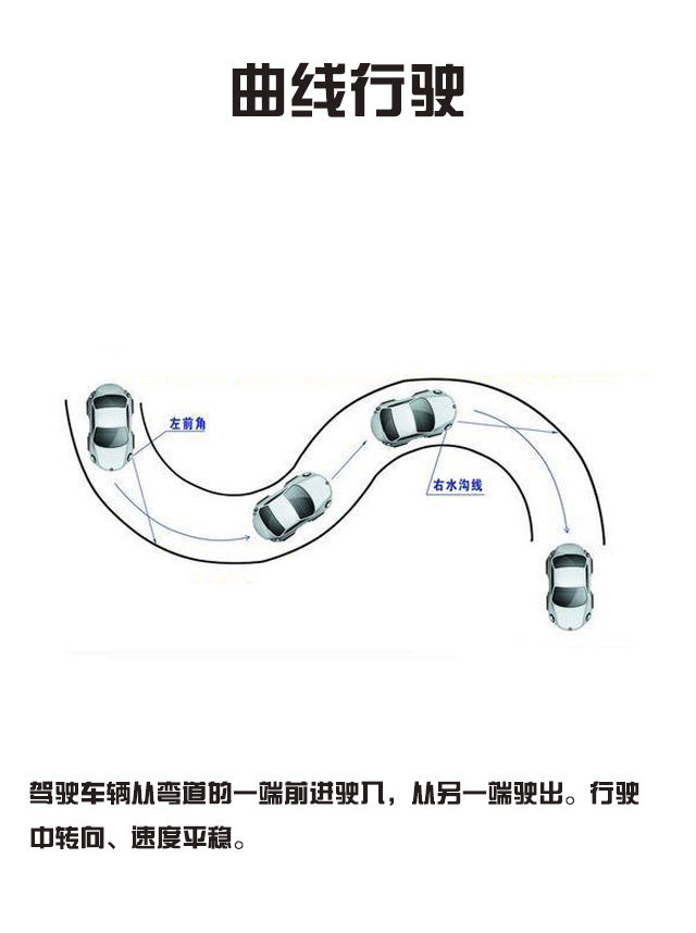 曲线行驶的难点在于转向的时机,但对比起侧方停车和倒车入库来说,教授认为曲线行驶和直角转弯是最容易通过的项目了。