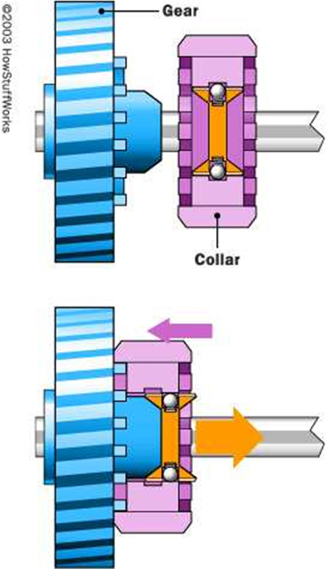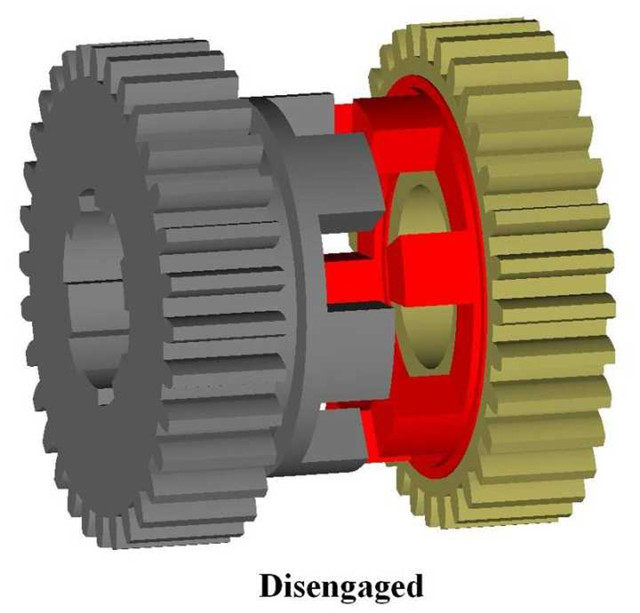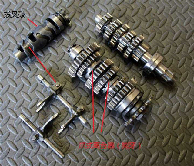 而这时候,手动变速箱上都有同步器来保证在换挡时保证两边齿轮转速基本相同而不出现较大冲击。不过在序列式变速箱上,直接省掉同步器,而采用了爪式离合器(狗牙)设计,狗牙是一种直齿离合器,但每个齿之间间隙很大,在受到拨叉片的推动时,会直接接合另外一边转速不同的齿轮上,以达到换挡目的。这也是序列式变速箱跟手动变速箱最大的区分点:有无同步器。