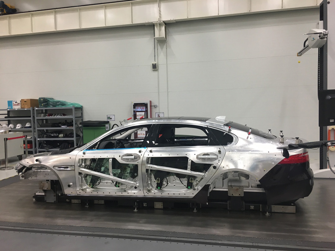 全铝车身车间采用卓越的过程质量保证体系,包括严苛的线上和线下检测等。线上检测,运用世界顶级质检设备——激光定位设备和摄像技术,这一工艺精确到0.2毫米,确保所有零件都完美匹配。