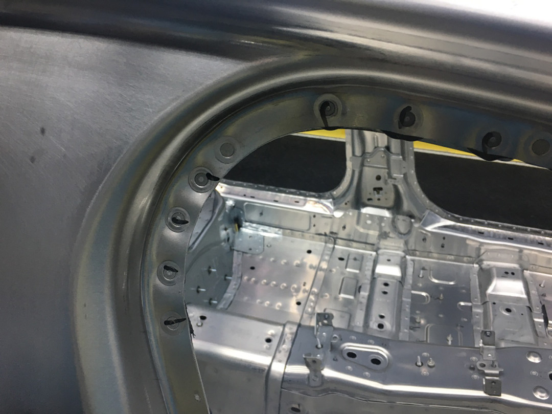 每个铆钉位经过检测合格都会打上标记,全车一共2754个铆钉都需要逐一检测,基本实现零死角。