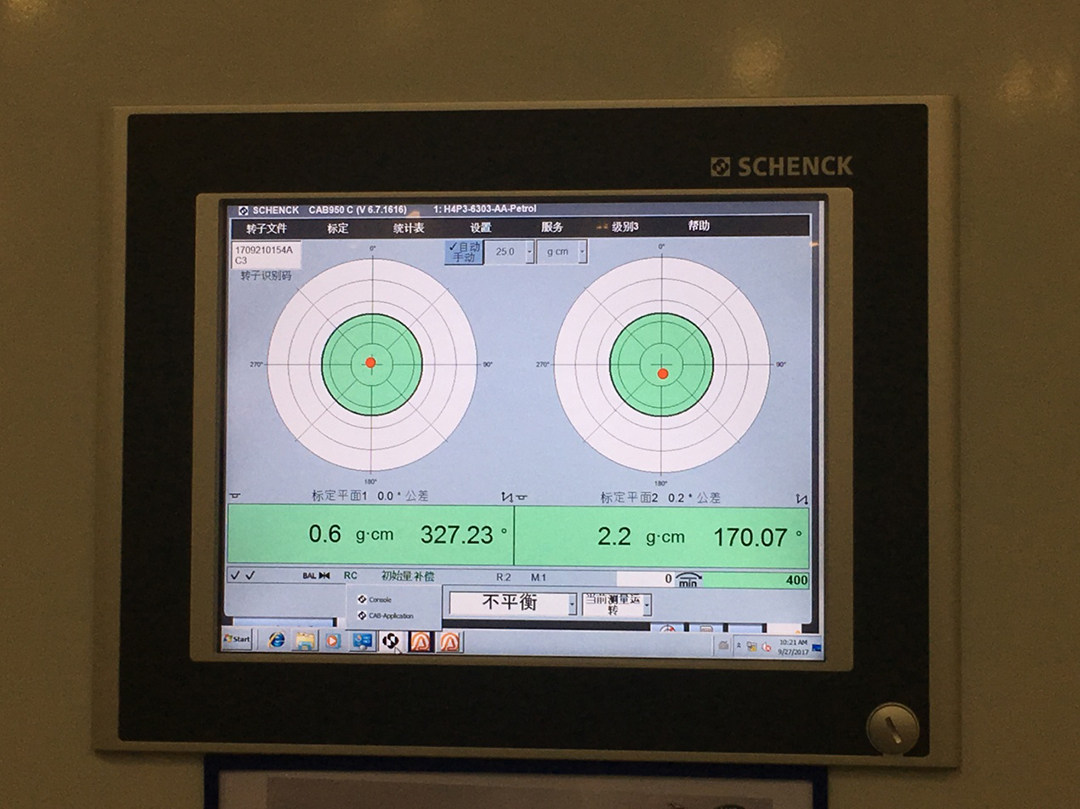 在激光打标后的工序便是测量曲轴的质量中心,通过德国申克动平衡测量机,来精确的测量曲轴的质量。我们会对高速旋转的曲轴进行质量定心和动平衡测量。