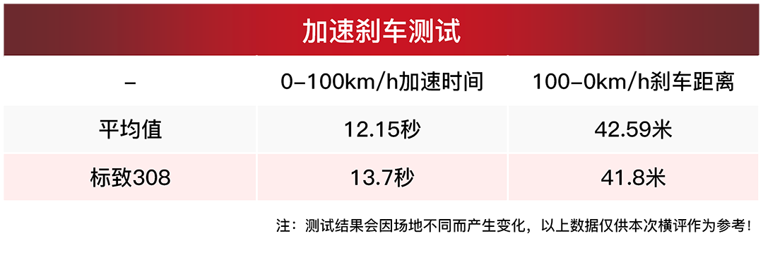 标致308的山车距离比较短,在同级别车型中算是比较有优势。