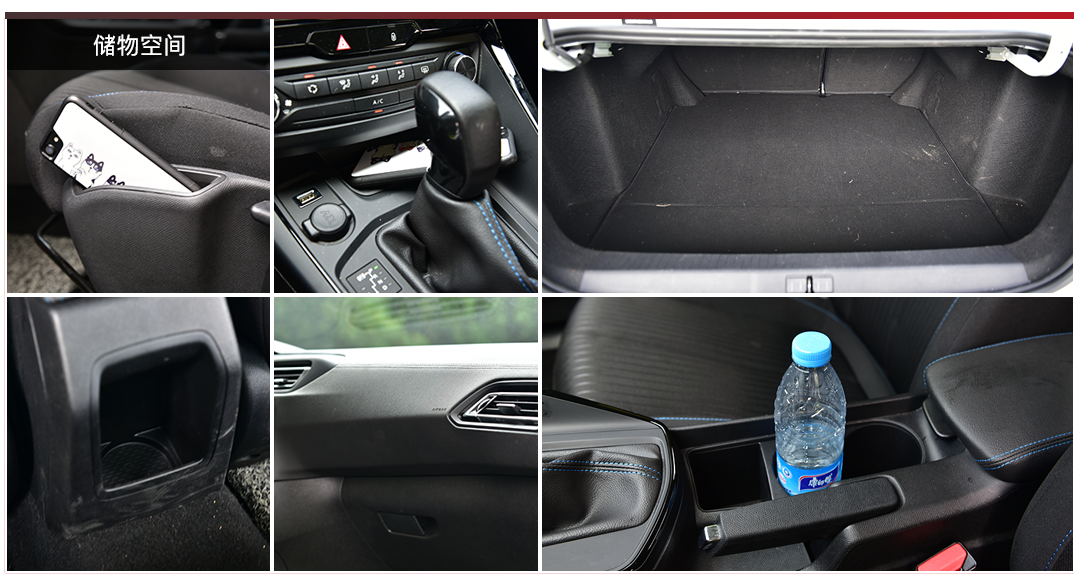 后备箱空间中规中矩,开口高度不高。标致308的车内储物空间比较多,有些储物格的位置比较奇葩。