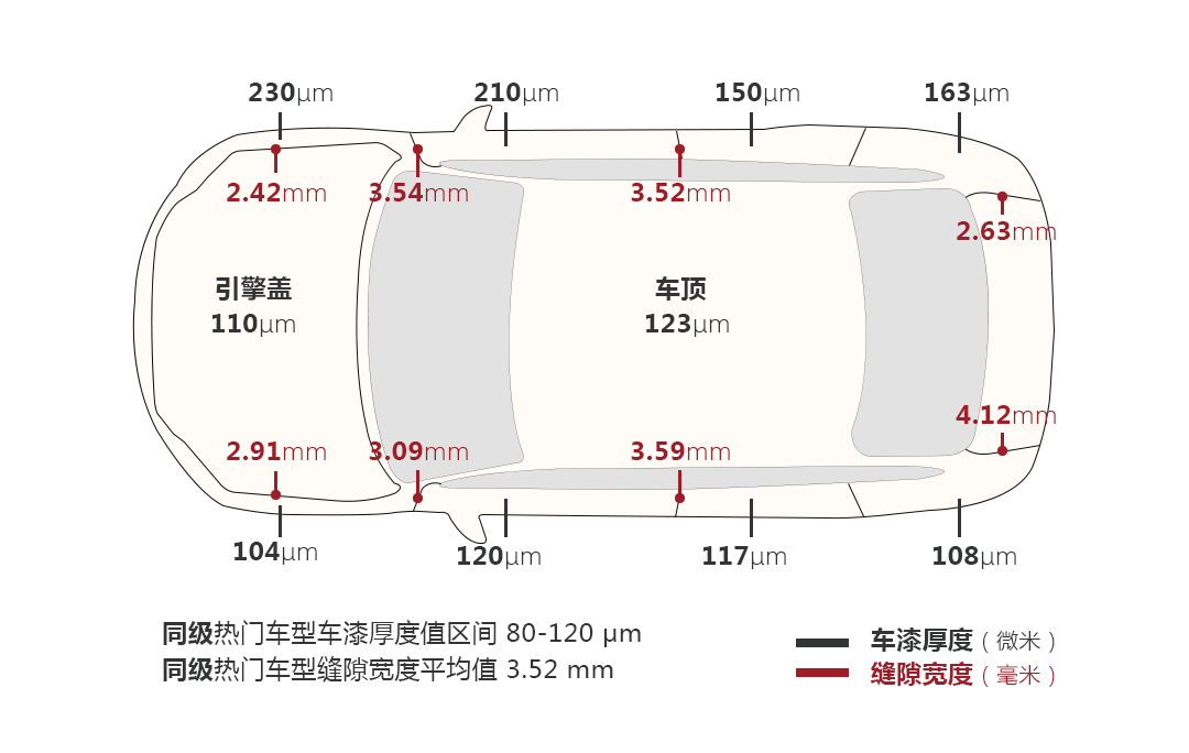 外观上看,标致308的全车缝隙比较均匀,车漆没有杂质,色泽依旧挺好的。教授测了一下车漆厚度,大概在100-120微米范围内,表现算是优秀。