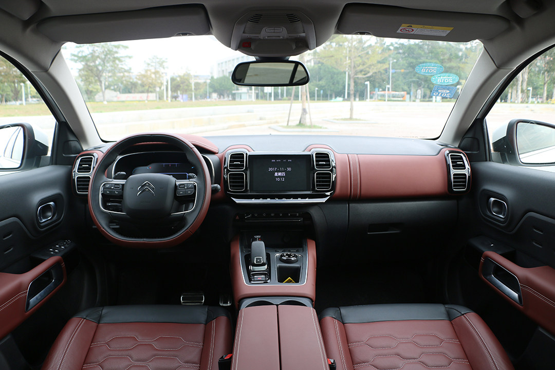 内饰色调有,雅棕、深灰、浅灰,整体格调偏重舒适、自然。大部分人体接触的地方都覆盖了皮革。座椅有普通织物、织物+皮革镶拼面料以及Claudia真皮三种材质。但座椅设计和欧洲不一样,欧洲人喜欢偏硬需要有足够的承托力,而中国人喜好舒适柔软。