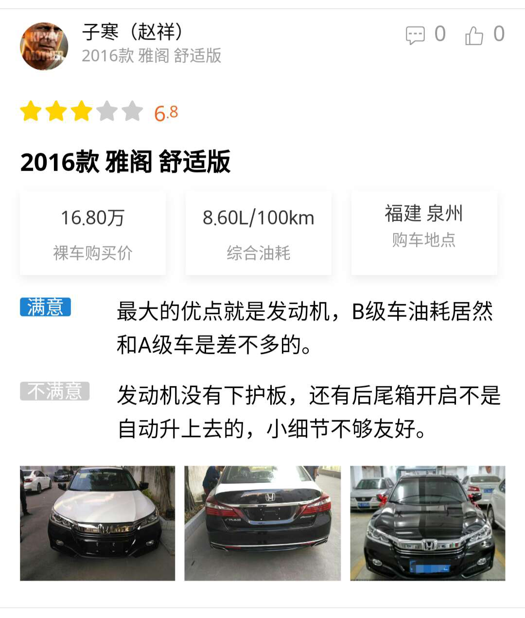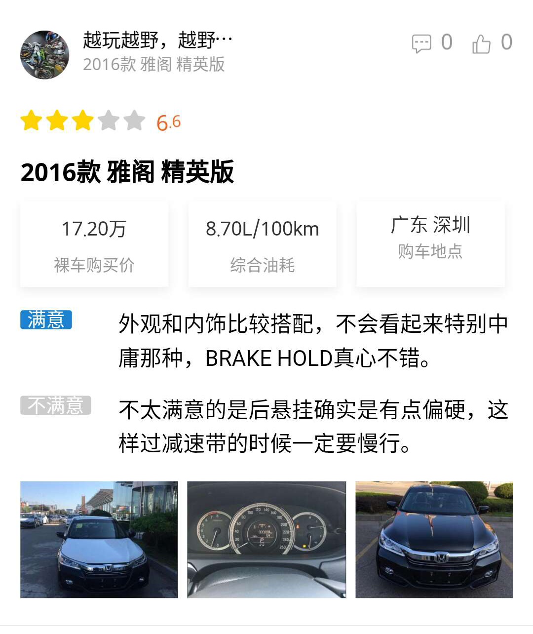 感兴趣的朋友可以点击小程序查看详细口碑,从口碑中可以看到,车主们对雅阁的油耗表现、外观和内饰设计甚是满意;同时也对一些细节地方表示不满。