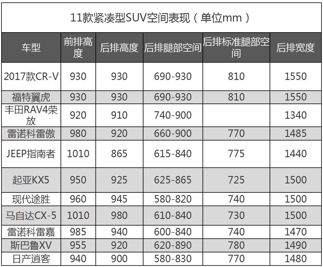 这些车看上去差不多大,也都宣传自己的后排空间宽敞无比,这可把我们挑花眼了,其实对于消费者来说,买紧凑型SUV主要就是家用(别告诉我你买CR-V是为了飙车),所以买家最想知道的无非就是几个问题: