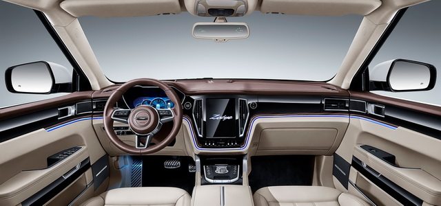 众泰T700的内饰采用对称设计,而且线条平直规整,给人一种刚强威严的感觉。10英寸中控屏在中间非常亮眼,可惜UI设计比较太过花哨,让整个整车档次不升反降。