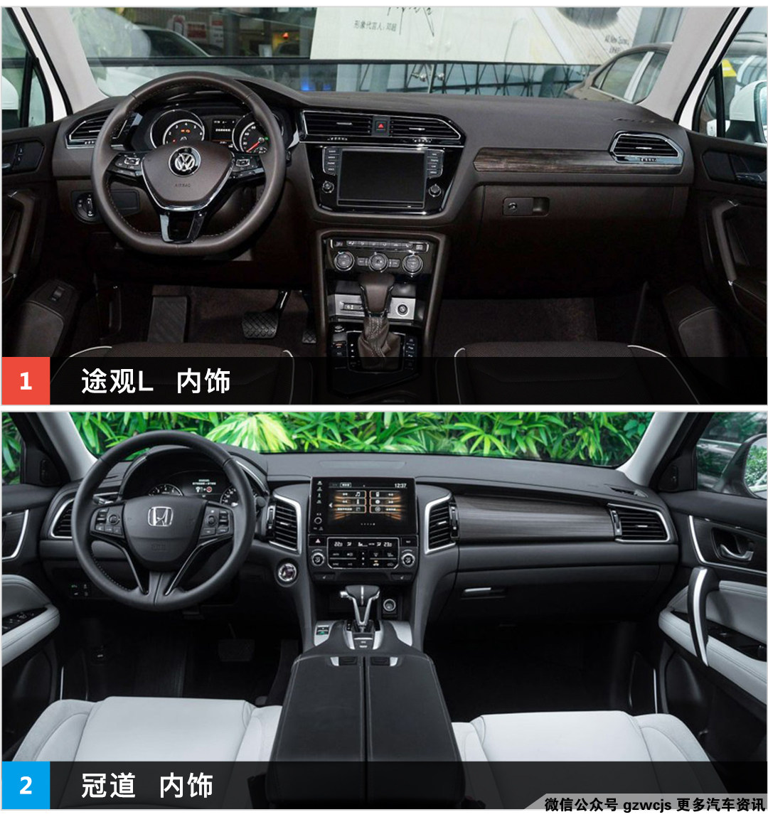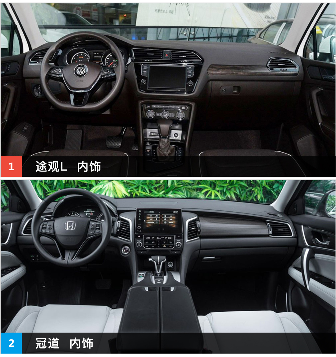 冠道的车身尺寸稍微要比途观L大一点,轴距要长29mm,而且冠道采用了座舱前移的设计理念,使得冠道的车厢空间在同级SUV中极具优势,然而这还没完,冠道的后排地板是完全平整无凸起的,这种极致宽敞的后排体验是几乎每个车主最满意的一点;途观L的座椅会稍微偏硬,这样的好处在于给人更好的承托,而且长时间乘坐也不容易累;而冠道的座椅很宽大,而且很软,短时间乘坐会很舒服,可是时间一长就容易腰酸;途观L的后排座椅是可调节靠背的,而冠道是不可调节的。那么对于这两款SUV车厢内饰的简单概括就是:途观L—精致;冠道—豪华