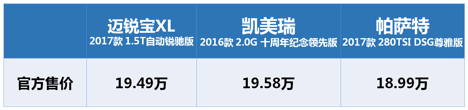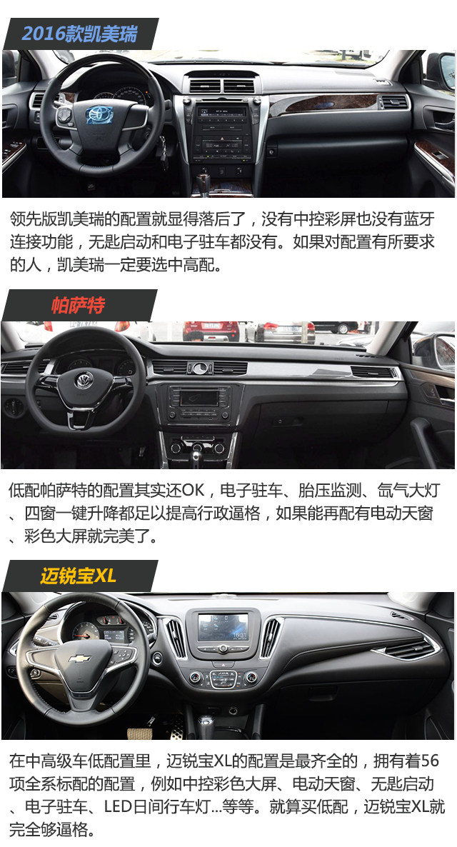 先说结论:迈锐宝XL>帕萨特>凯美瑞