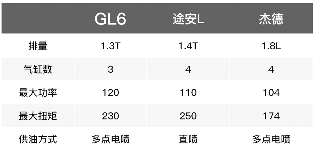 并且综合价格,途安L 14.58万元起步售价、杰德12.99元起步的售价,而比它们尺寸更大动力更强的GL6起步售价仅仅14.49万。由此可见,教授对于GL6的市场前景还是非常看好的。
