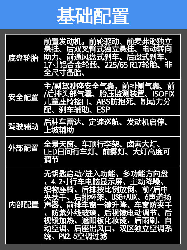 基础配置是全系最低配的20T领先型上的配置。作为一款官方售价在22-32万的车型,昂科威的基础安全配置达标。17寸的铝合金轮毂一般来说不算小,但是昂科威外观比较大气,17寸轮毂看上去就稍微小气一些。其他配置方面,昂科威全系标配主动降噪功能,昂科威的车厢静谧性又多了一个保障。