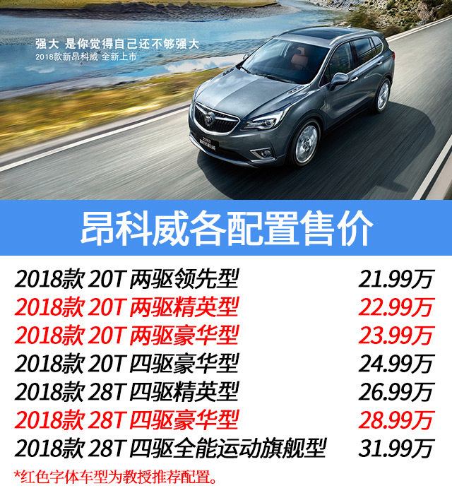 总结:18款20T的昂科威在同级来说,配置稍微差一些,不过昂科威的质感是要稍比别家的好一些,加上优惠大,所以购买中高配的精英型和豪华型。对于2.0T的28T车型,教授更加推荐豪华型,因为精英型的价位被途观L的330TSI两驱旗舰版强势卡位,导致教授更加倾向于途观L,但是对于豪华型来说,这个价位的配置确实比较高,加上昂科威数一数二的静音性,成为了这个价位最值得推荐的SUV之一。