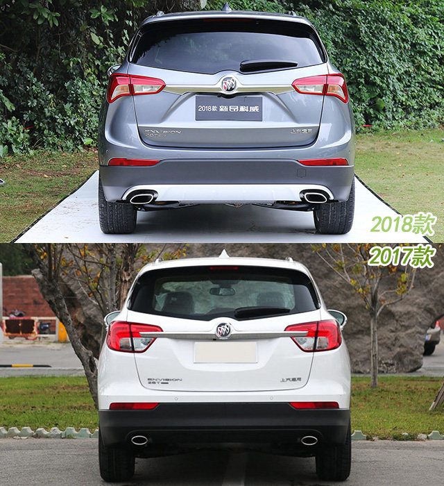 18款的昂科威在外观上有小幅度的改变。前脸的进气隔栅换成了现在别克家族式的飞翼型隔栅,让前脸视觉上更加宽一些,雾灯区域方面也有小改。尾灯方面也变得更加细长,尾灯下的车身区域也变得凹凸有致,使车尾看上去更加性感。