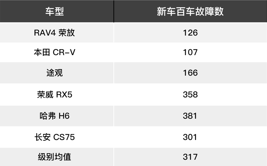 百车故障数表示每一百辆车中出现的故障数,包括故障、异响、使用不便等问题,百车故障数越小,说明其质量越好。