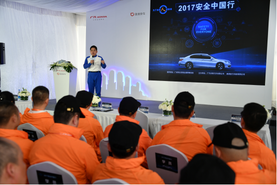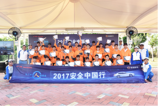 2017年10月12日,由广汽本田联合广州市公安局交通警察支队、知名网约车平台滴滴出行发起的“2017安全中国行”公益项目华南站在广汽本田喜悦安驾中心正式启动。项目以交通安全教育的形式开展,通过安全驾驶理论培训树立参与者安全文明驾驶的理念,同时结合道路实操训练提升其在日常驾驶环境中应对突发情况的能力。“2017安全中国行”在华南区域首发,随后将辐射华东区域。