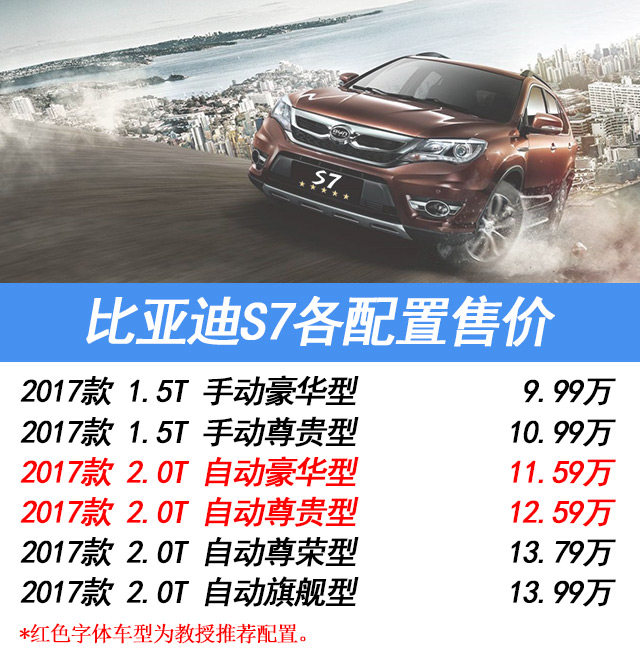 总结:比亚迪S7基础配置丰富,中高配增加的配置不是十分的多,所以教授更加倾向推荐中低配。