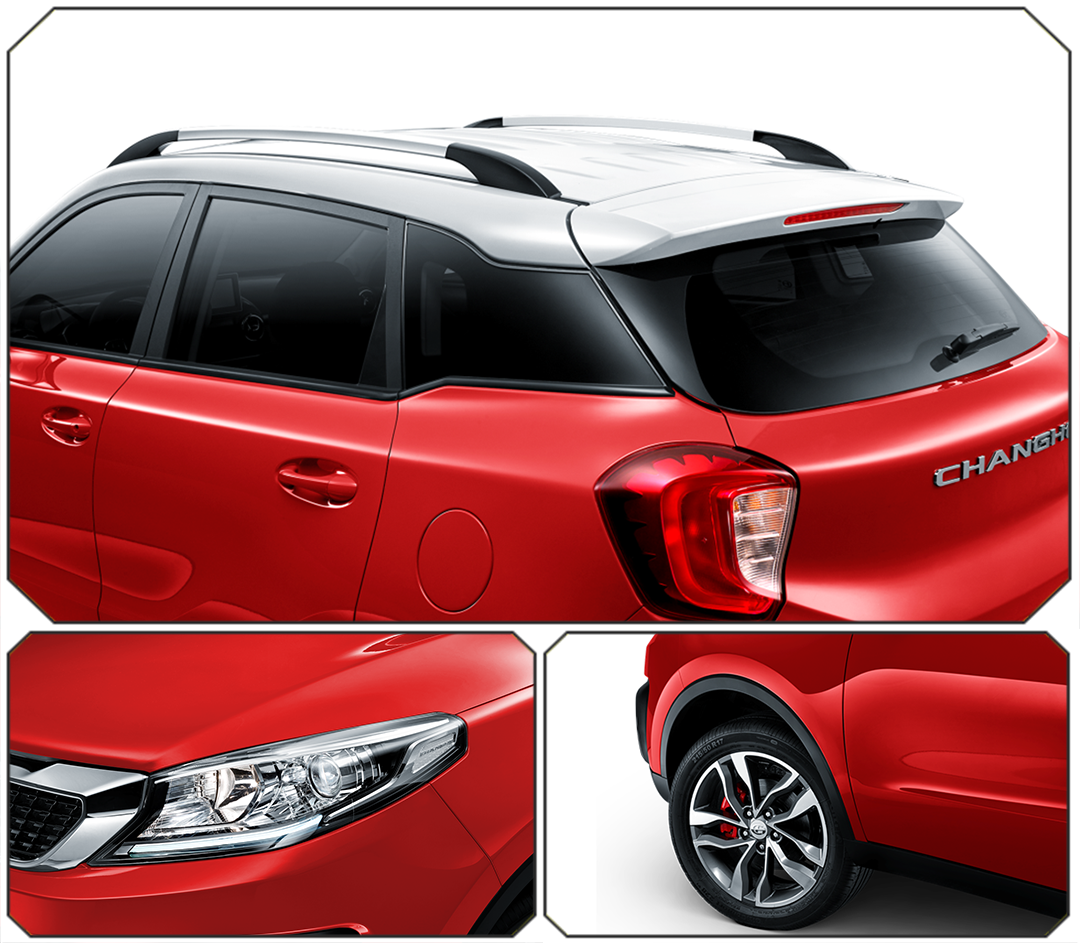 暂不说那繁星点点的进气格栅、肌肉人鱼线设计的引擎盖以及虎牙造型的雾灯组合,单是那炯炯有神的鹰眼前大灯,就能一秒虏获你的芳心,再加上双色浮岛车顶以及烈焰式尾灯,更显时尚与动感。另外,它的战斧式双色轮毂、红色刹车钳也充分阐释运动之美。整体车身采用国际领先的流畅车身线条设计,看起来别具一格,张扬而不浮夸。