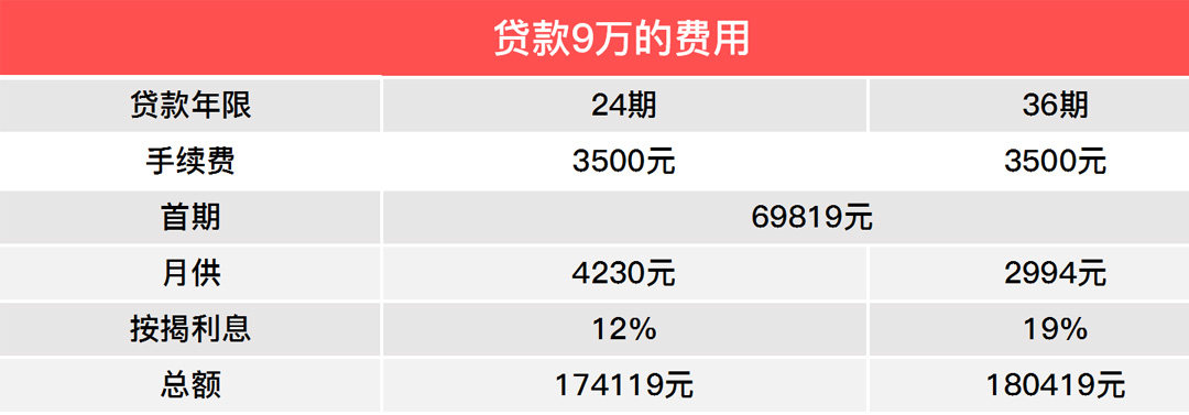4S店给出的贷款政策优惠的确非常吸引,特别是后面“免息”二字。如果以6万进行计算,那么首付需要7.68万,对于很多消费者来说还想获得更低的首付,此时销售告知我们,能贷款到9万。
