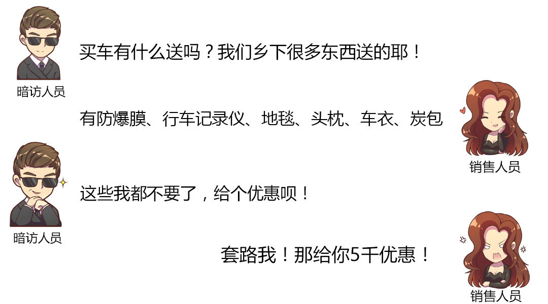 从上图中我们可以看到除了一些常规的保险费用以外,多了一项综合服务费的收费项目。经过我们向销售咨询,该项服务费主要包括:PDI检测费、洗车费等一些杂费。听完销售跟我们详细的讲解后,内心是这样的......
