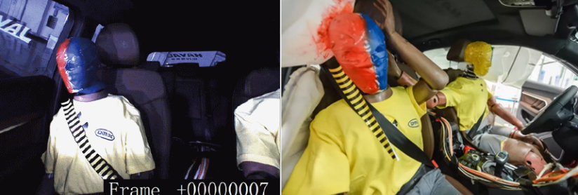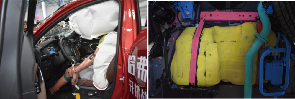 约束系统作用也很明显,安全气囊和气帘能及时弹出保护了乘客,驾驶员位置头部AIS 3+损伤概率为0.3%,颈部AIS 3+损伤概率为5.3%;副驾驶位置头部AIS 3+损伤概率为0.3%,颈部AIS 3+损伤概率为6.9%,均远低于10%,事故后施救也不会受阻。