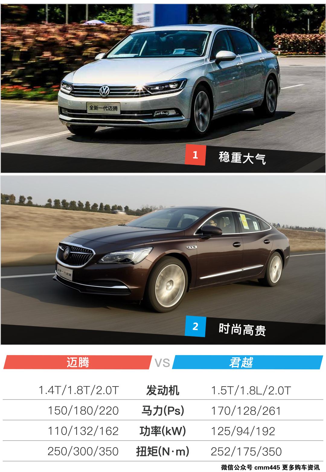 近日,迈腾推出了2018款车型,主要是对配置进行了一些升级,从而巩固它在行政级轿车中的市场。而除了迈腾以外,别克君越的实力同样是不容小觑。从驾驶质感和乘坐质感来看,两者都表现出同级中较高的水准,下面不妨来好好对比一下。