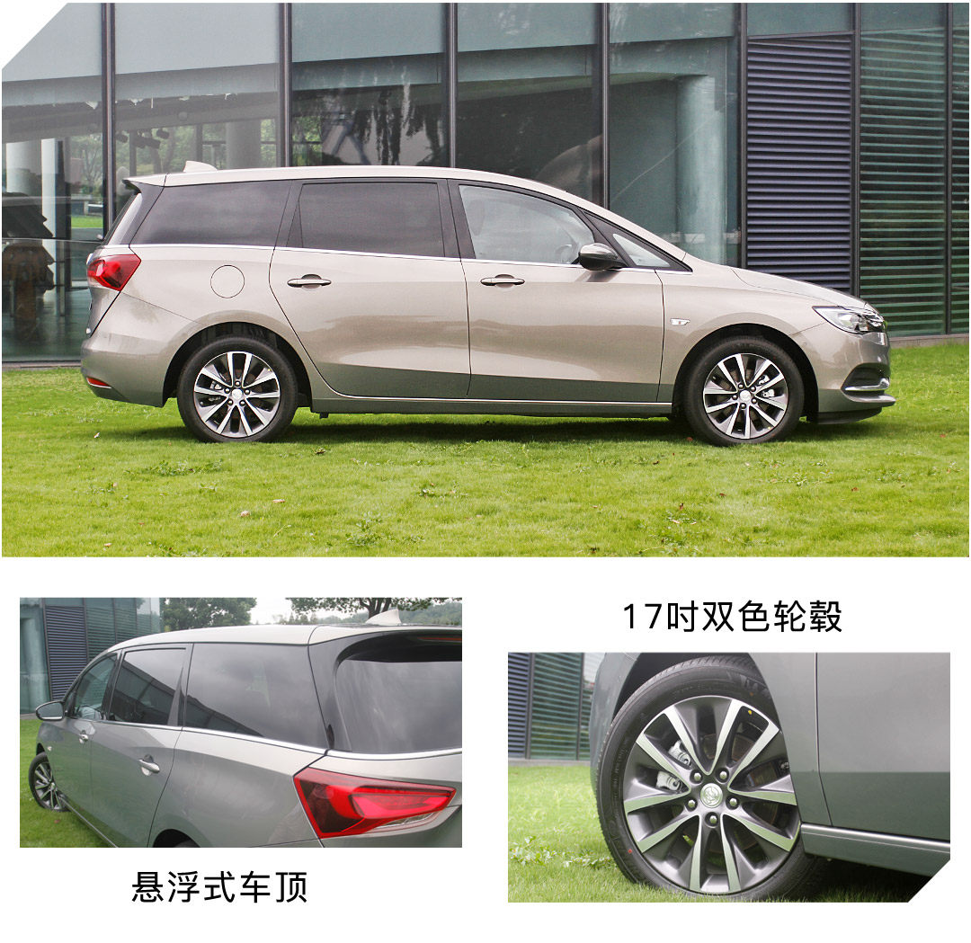 别克GL6的侧面与常规的MPV有一定的区隔,B柱以后采用的是隐私玻璃,再加上隐藏式的D柱设计,悬浮式车顶的效果就格外抢眼了。而轮毂也采用了17英寸铝合金双色设计,并辅以米其林轮胎,不管是视觉效果还是档次感都挺出色。