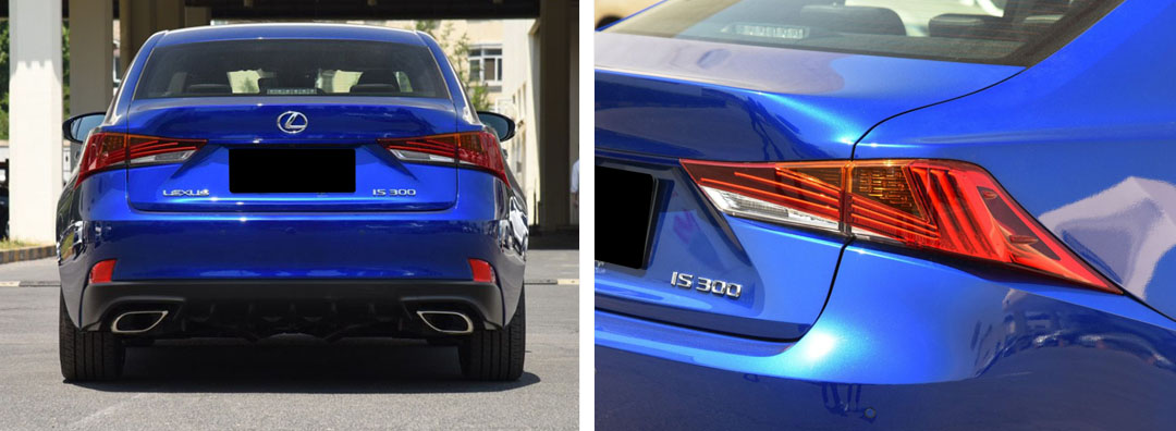 从侧裙拉起了一条线一直延伸到尾灯,从而使得车身前半部分看上去是向前压的,而车身后半部分则是往上翘的,这样的造型似乎在强调TA是一辆大后驱车;全系的前后都是225/45 R17的轮胎和通风盘式刹车。由于尾灯下方设计了一条小沟,所以尾灯看起来非常立体,就像是一颗宝石镶进车里一样,而不像大部分车的尾灯就像平面贴上去的,尾灯内部也有“L”的设计元素;从整部车大大小小的部位都能看出雷克萨斯对细节设计真的非常讲究,是业界上真正意义的精致紧凑。