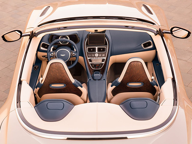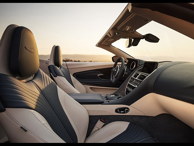 内饰方面,新车采用了米色与深蓝色的双色设计,提供全新的木质或碳纤维座椅靠背板饰,奢华感扑面而来。得益于全新的顶篷设计,新车后备箱空间与DB9 Volante相比提升20%,日常实用性进一步提升,出门旅行不再尴尬。