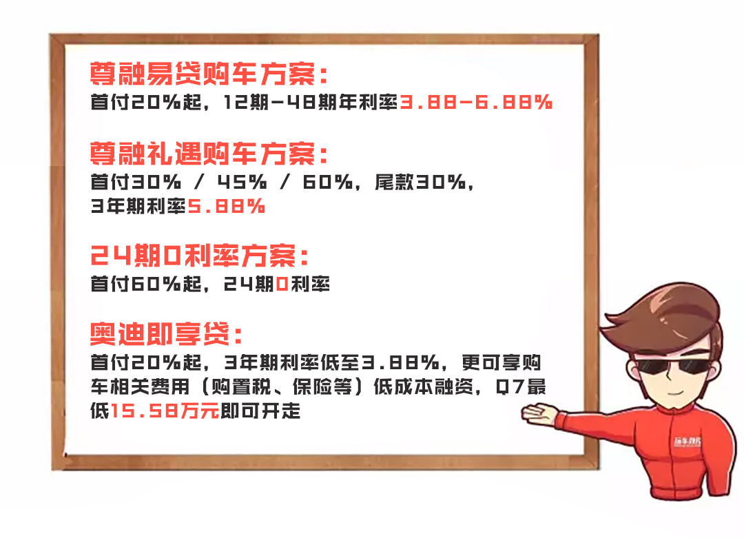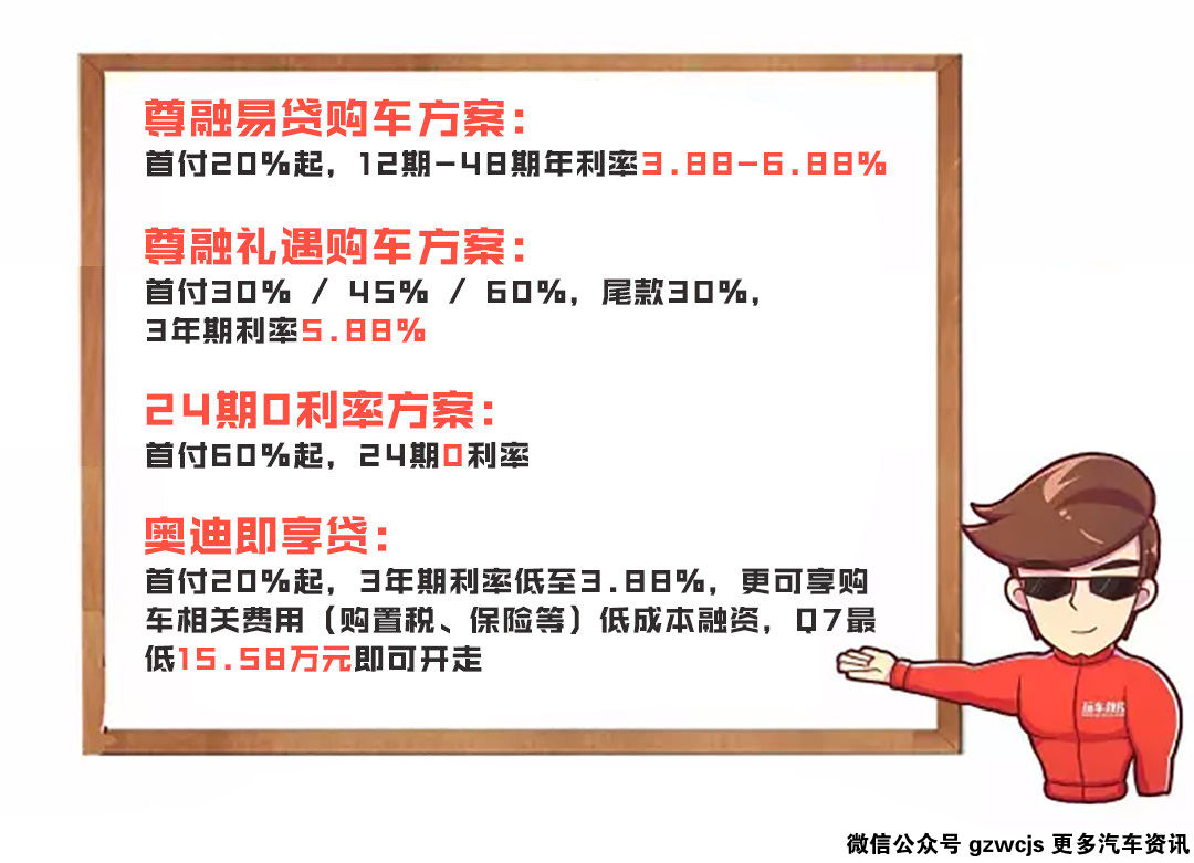 让人放心的售后服务,加上各种不同比例的金融方案,买奥迪新车就是轻松。喜欢就行动起来,早日开上心仪的奥迪新车。