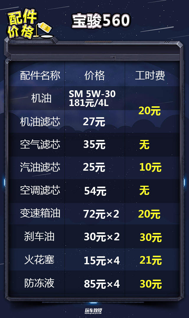 教授总结:宝骏560行驶6万公里的常规保养费用为3938元,折算下来每年的保养费用大约是1313元,还是非常低的。一年的养车成本合计是18294元,平均每个月花费1525元,这样的养车成本相比竞争对手有一定的优势,养起来也比较的轻松。
