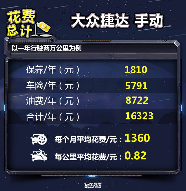 教授总结:作为10万元左右的家用车,捷达的配件费用和工时费都是比较便宜的,所以保养成本也不会太贵。手动挡两万公里保养费用为1810元,自动挡两万公里保养费用为2030元。养车费用也比较的给力,手动挡一年的用车费用为16323元,自动挡为17533元,折算下来每个月的花费分别是1360元和1461元,综合来看养这个车还是很轻松的。