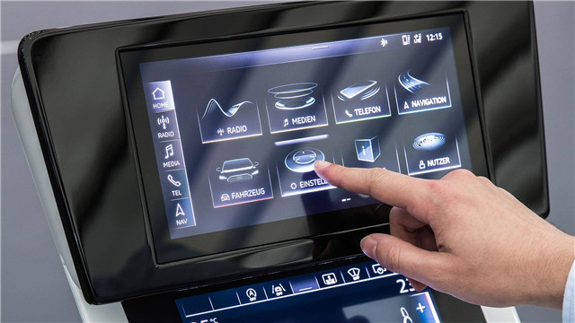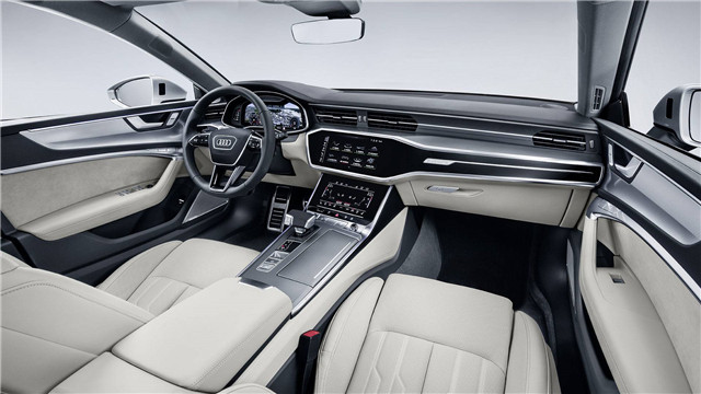 整个内部座舱完全数字化。一个12.3英寸的全液晶仪表盘显示导航及驾驶相关信息,中控台依旧采用了和新A8相同的双屏设计,其中上方10.1英寸的触控屏幕用于显示娱乐信息,下方还有一个8.6英寸触控屏幕,用于代替传统按键,负责控制空调、座椅等舒适性配置,并支持手写输入功能。除了三块大屏幕外,其他的按键也大部分采用触摸形式,并带有触觉和声音反馈。