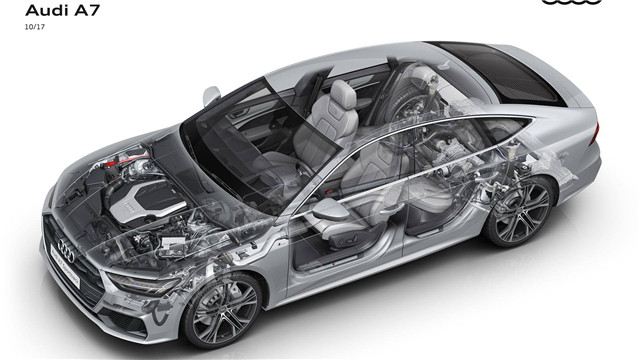 另外,全新A7采用与全新Q7、全新A8相同的MLB Evo平台打造,并使用了大量铝材,可选装自适应空气悬架和动态四轮转向系统。