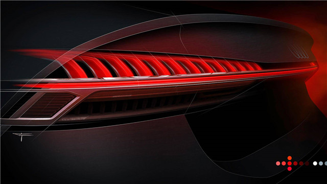 再来看看尾灯的设计,简直6得不行!一条平直细长的光带贯穿左右,两边各带有13个垂直的独立光栅,并都采用OLED光源。