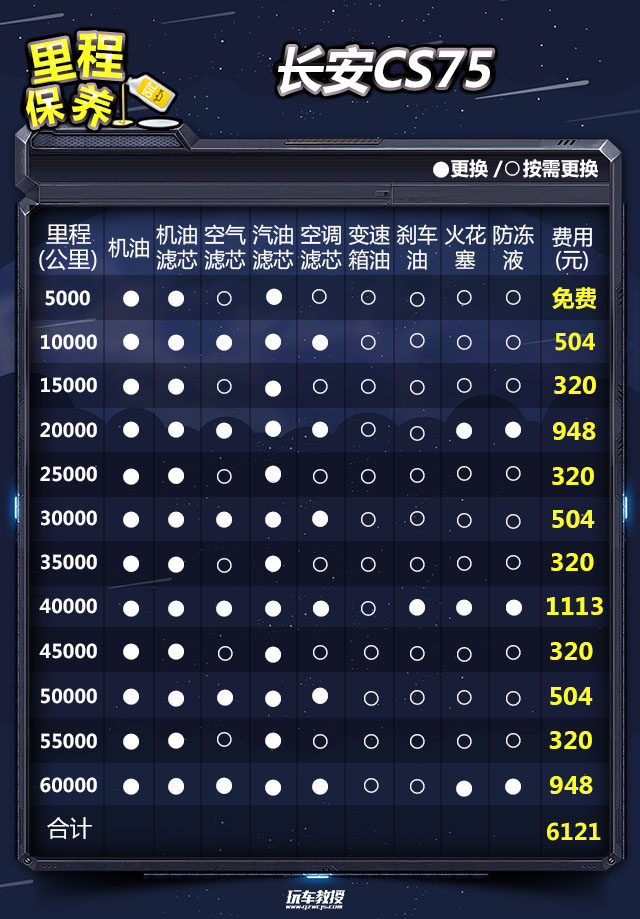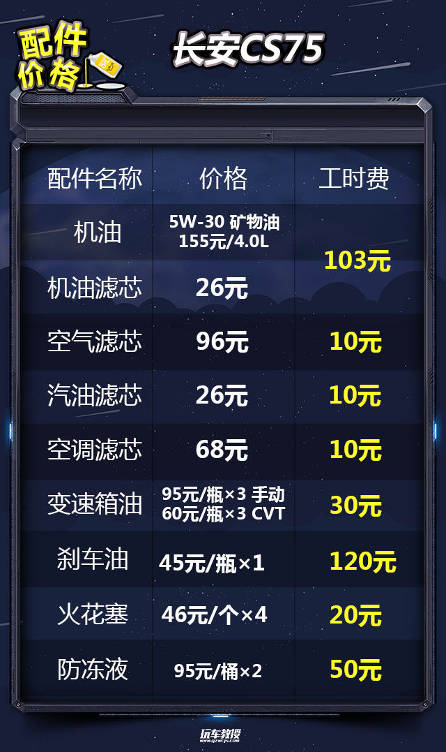 教授总结:从以上分析结果来看,长安CS75小保养的费用为320元。以关注度最高的1.5T 自动锋领型为例,一年两万公里的保养费用为2040元,平均每月的花费为1993元。值得注意的是,长安CS75全系车型的保养费用没有高低配车型之分,保养周期和配件价格是完全一致的。
