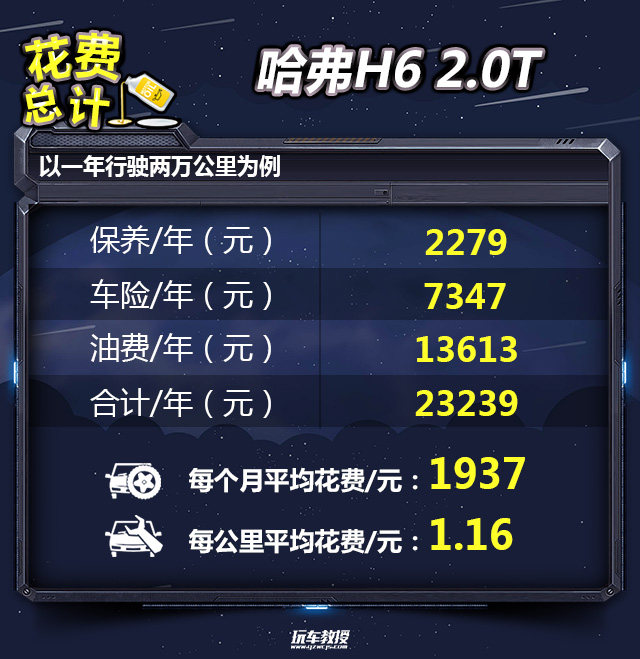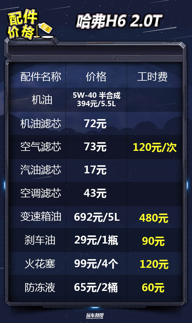 教授总结:从保养分析结果来看,哈弗H6的小保养价格为586元,每年花在保养上面的费用为2279元,总的来说,哈弗H6的保养费用偏贵。另外,以热销的红标 2.0T 自动两驱智尚型为例,一年两万公里的养车费用为23239元,平均每月花费1937元,用车成本偏高。